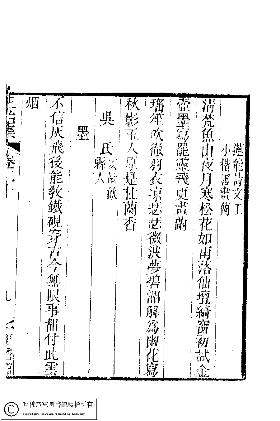 | (PRINT FRIENDLY VERSION) 國朝閨秀正始集﹕二十卷﹐附錄﹕一卷﹐補遺﹕一卷﹐又附題詞﹕一卷(清惲珠輯)。清道光十一年(1831)紅香館刻本。 ![]() Page : 20.9a | click for larger image | Back |