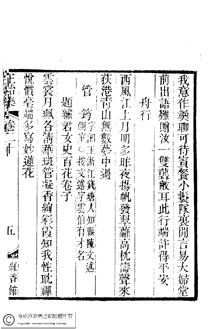 | (PRINT FRIENDLY VERSION) 國朝閨秀正始集﹕二十卷﹐附錄﹕一卷﹐補遺﹕一卷﹐又附題詞﹕一卷(清惲珠輯)。清道光十一年(1831)紅香館刻本。 ![]() Page : 20.5a | click for larger image | Back |