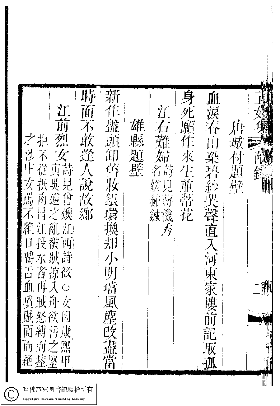 | (PRINT FRIENDLY VERSION) 國朝閨秀正始集﹕二十卷﹐附錄﹕一卷﹐補遺﹕一卷﹐又附題詞﹕一卷(清惲珠輯)。清道光十一年(1831)紅香館刻本。 ![]() Page : 附錄.3a | click for larger image | 國朝閨秀正始集﹕二十卷﹐附錄﹕一卷﹐補遺﹕一卷﹐又附題詞﹕一卷(清惲珠輯)。清道光十一年(1831)紅香館刻本。![]() Page : 附錄.2b | click for larger image | Back |