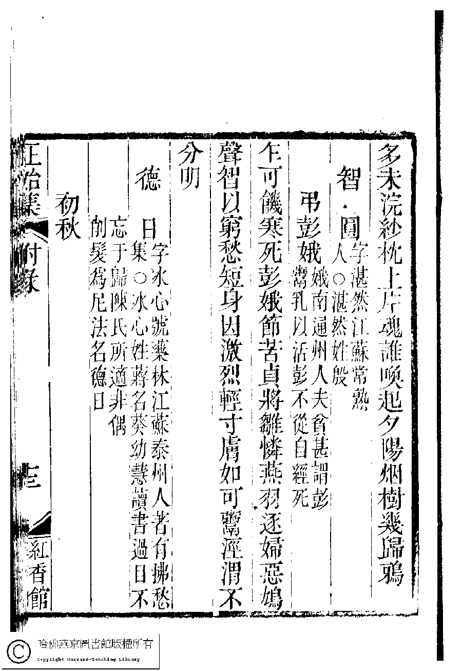 | (PRINT FRIENDLY VERSION) 國朝閨秀正始集﹕二十卷﹐附錄﹕一卷﹐補遺﹕一卷﹐又附題詞﹕一卷(清惲珠輯)。清道光十一年(1831)紅香館刻本。 ![]() Page : 附錄.13a | click for larger image | Back |