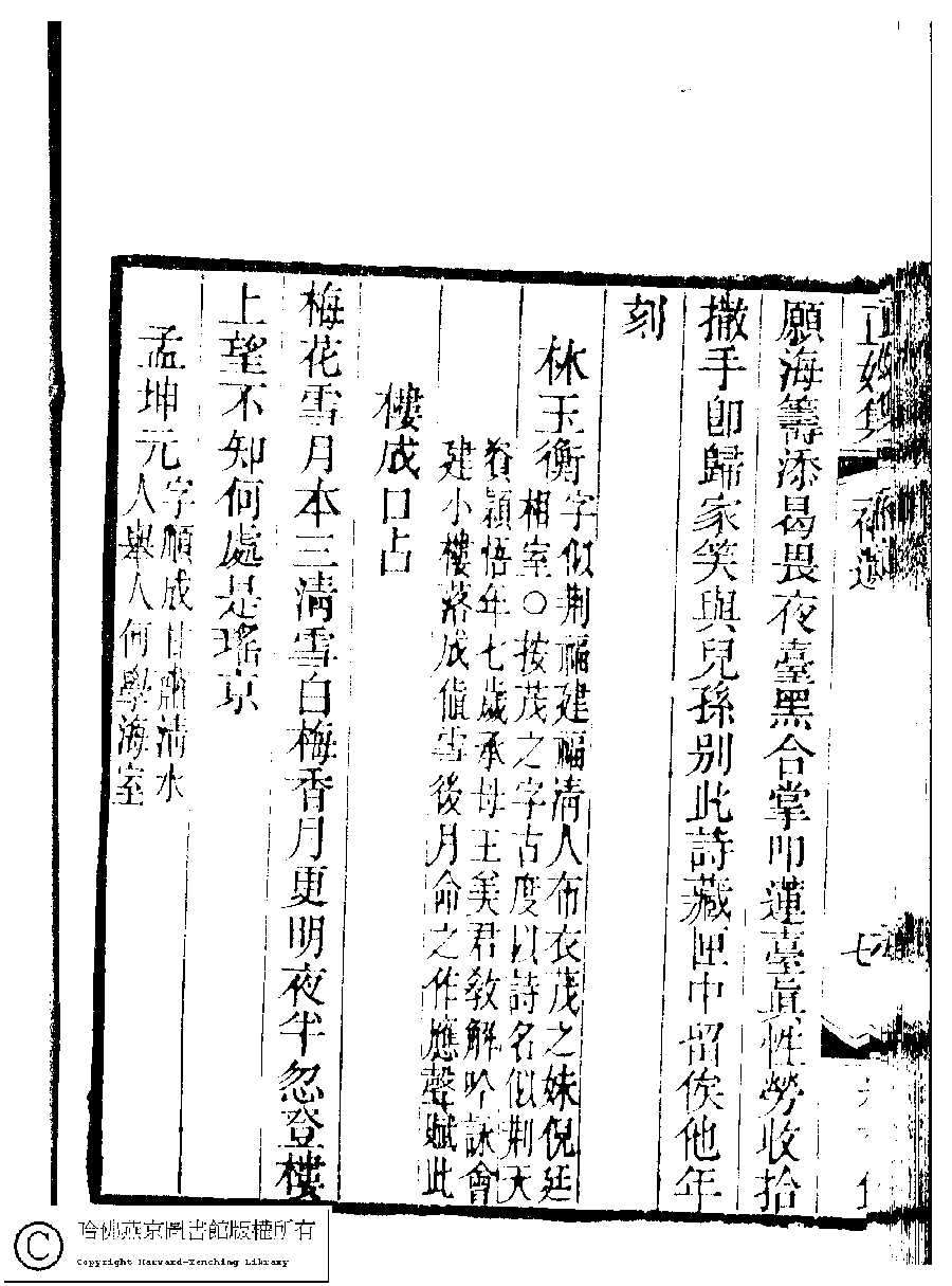 | (PRINT FRIENDLY VERSION) 國朝閨秀正始集﹕二十卷﹐附錄﹕一卷﹐補遺﹕一卷﹐又附題詞﹕一卷(清惲珠輯)。清道光十一年(1831)紅香館刻本。 ![]() Page : 補遺.7b | click for larger image | Back |