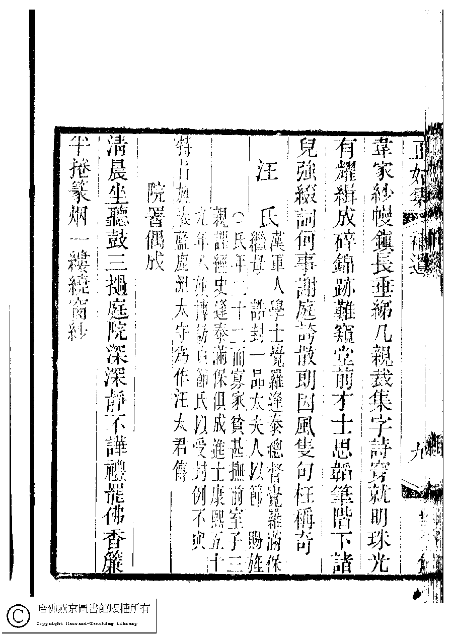 | (PRINT FRIENDLY VERSION) 國朝閨秀正始集﹕二十卷﹐附錄﹕一卷﹐補遺﹕一卷﹐又附題詞﹕一卷(清惲珠輯)。清道光十一年(1831)紅香館刻本。 ![]() Page : 補遺.9b | click for larger image | Back |
