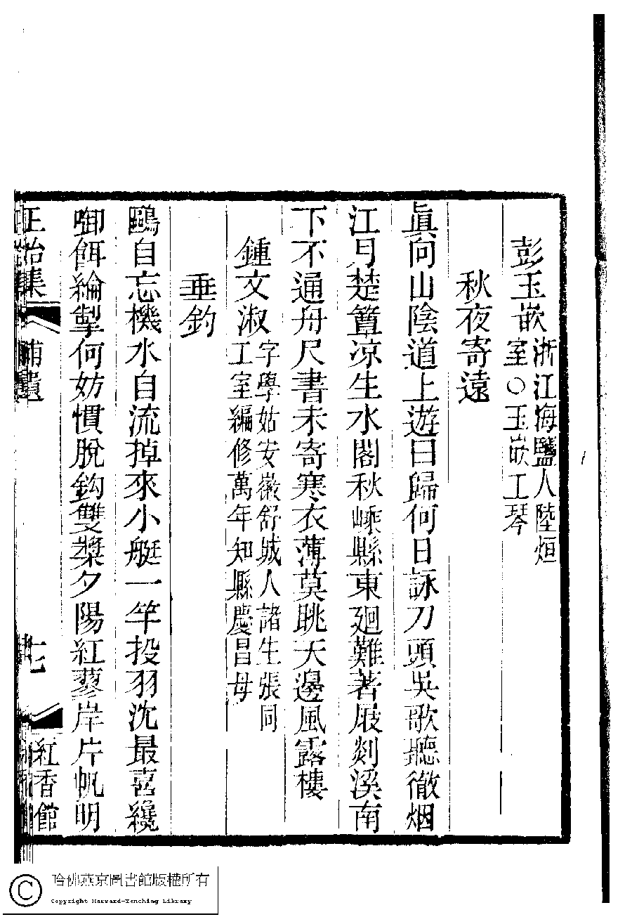 | (PRINT FRIENDLY VERSION) 國朝閨秀正始集﹕二十卷﹐附錄﹕一卷﹐補遺﹕一卷﹐又附題詞﹕一卷(清惲珠輯)。清道光十一年(1831)紅香館刻本。 ![]() Page : 補遺.17a | click for larger image | Back |