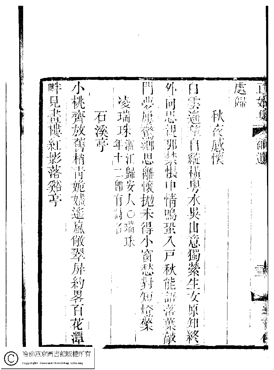 | (PRINT FRIENDLY VERSION) 國朝閨秀正始集﹕二十卷﹐附錄﹕一卷﹐補遺﹕一卷﹐又附題詞﹕一卷(清惲珠輯)。清道光十一年(1831)紅香館刻本。 ![]() Page : 補遺.23b | click for larger image | Back |