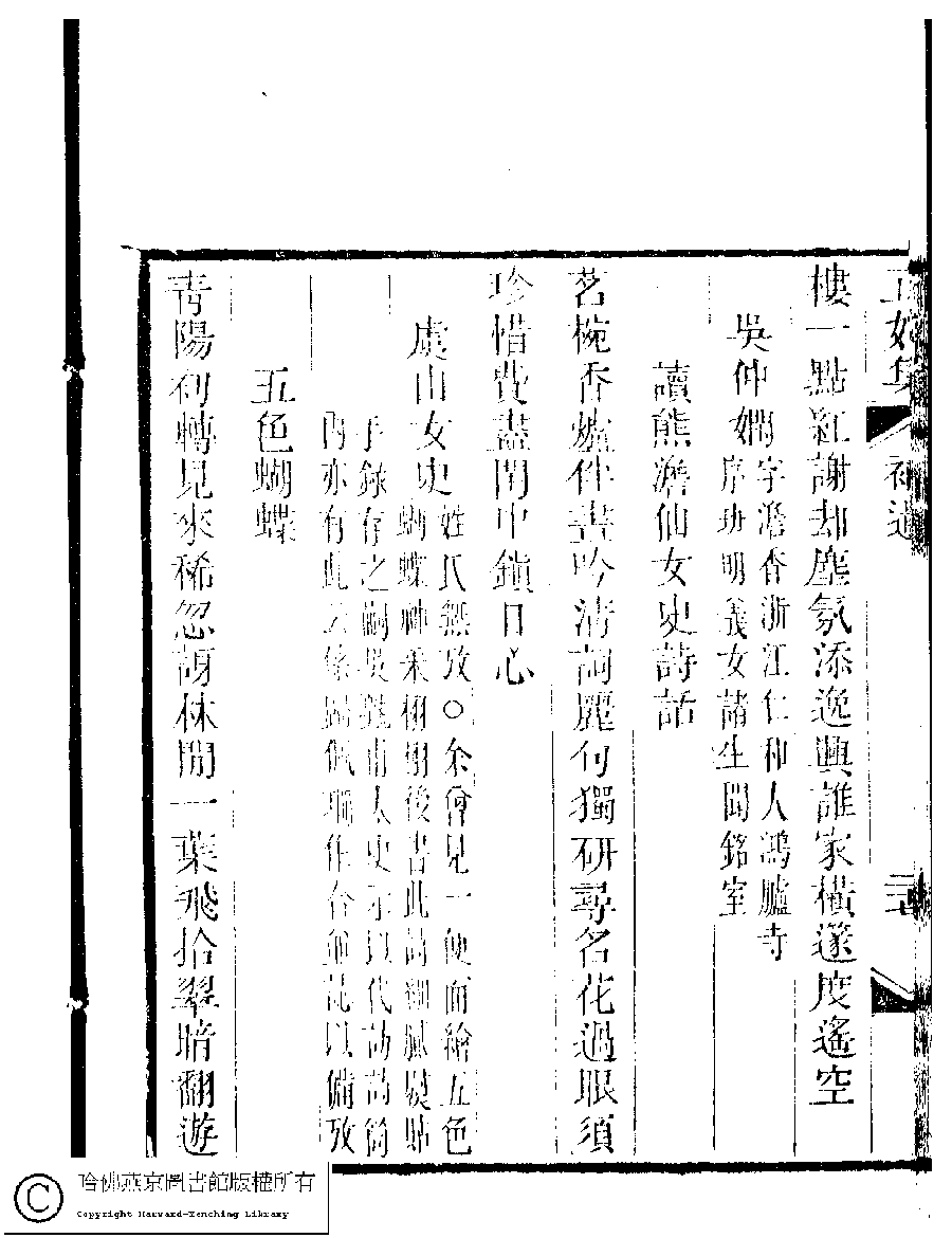 | (PRINT FRIENDLY VERSION) 國朝閨秀正始集﹕二十卷﹐附錄﹕一卷﹐補遺﹕一卷﹐又附題詞﹕一卷(清惲珠輯)。清道光十一年(1831)紅香館刻本。 ![]() Page : 補遺.27b | click for larger image | Back |