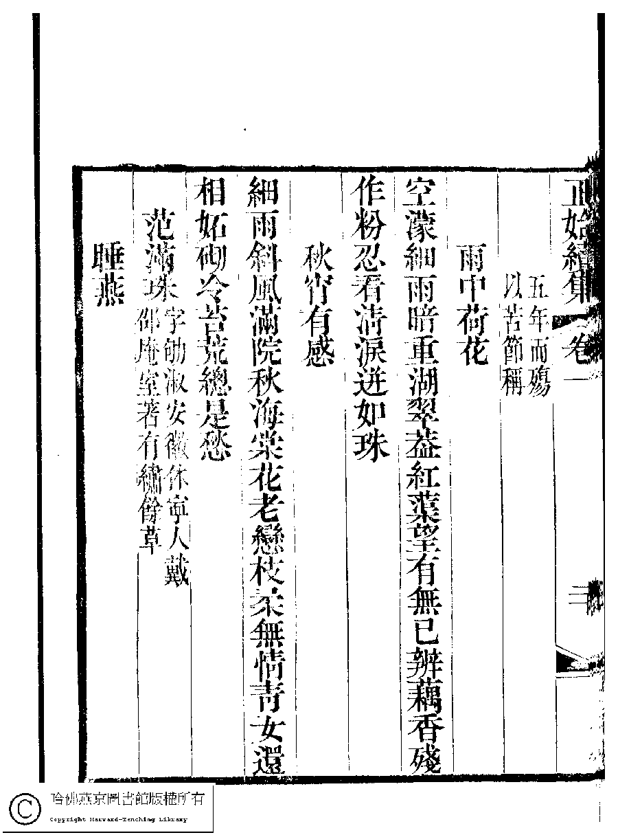 | (PRINT FRIENDLY VERSION) 國朝閨秀正始續集﹕十卷﹐附錄﹕一卷﹐補遺﹕一卷﹐輓詞﹕一卷(清惲珠輯)。清道光十六年(1836)紅香館刻本。 ![]() Page : 1.20b | click for larger image | Back |