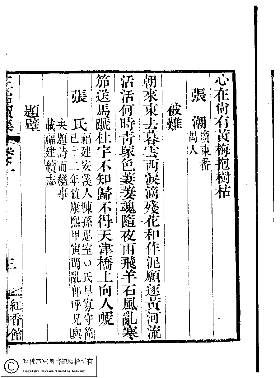 | (PRINT FRIENDLY VERSION) 國朝閨秀正始續集﹕十卷﹐附錄﹕一卷﹐補遺﹕一卷﹐輓詞﹕一卷(清惲珠輯)。清道光十六年(1836)紅香館刻本。 ![]() Page : 2.3a | click for larger image | Back |