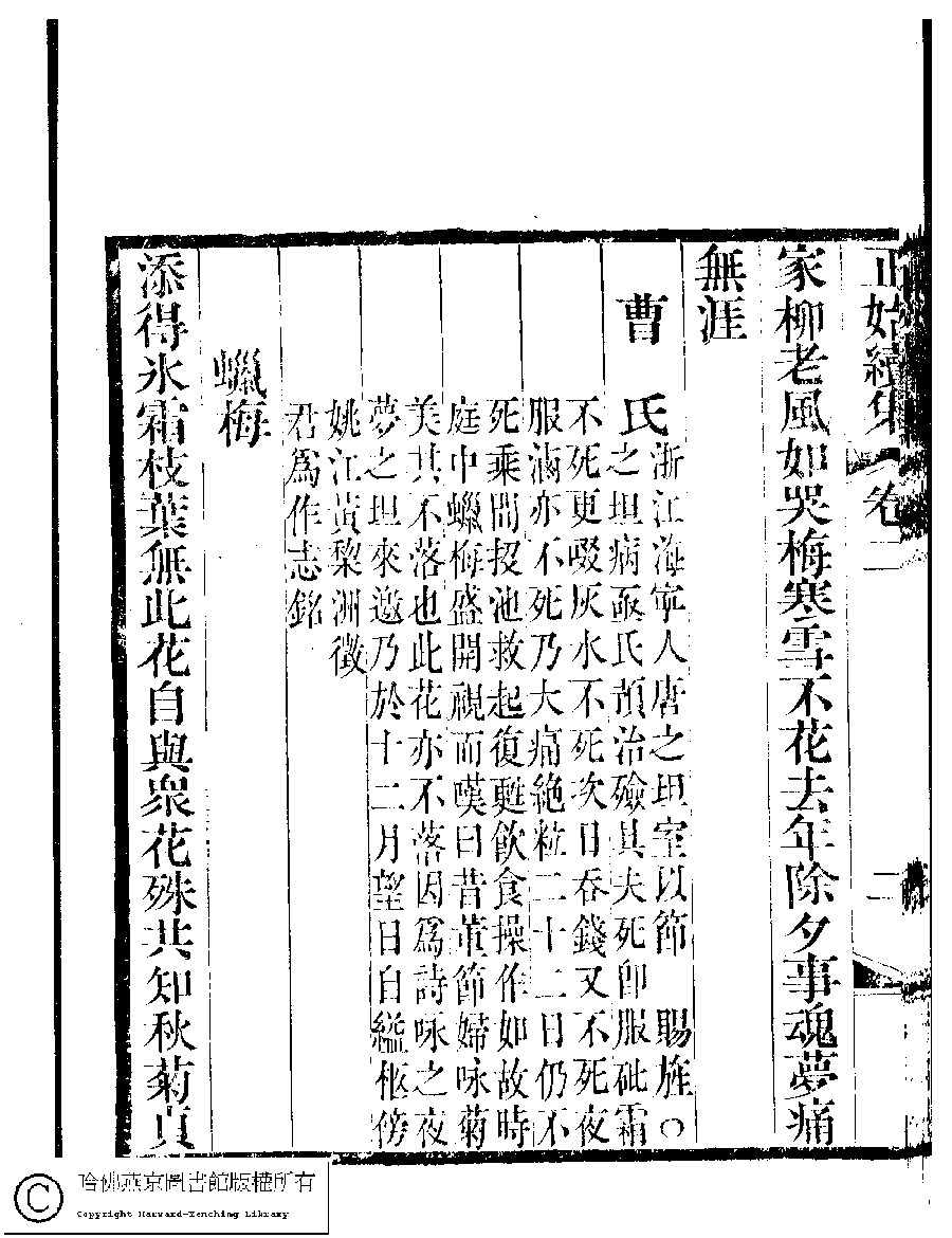| (PRINT FRIENDLY VERSION) 國朝閨秀正始續集﹕十卷﹐附錄﹕一卷﹐補遺﹕一卷﹐輓詞﹕一卷(清惲珠輯)。清道光十六年(1836)紅香館刻本。 ![]() Page : 2.2b | click for larger image | Back |