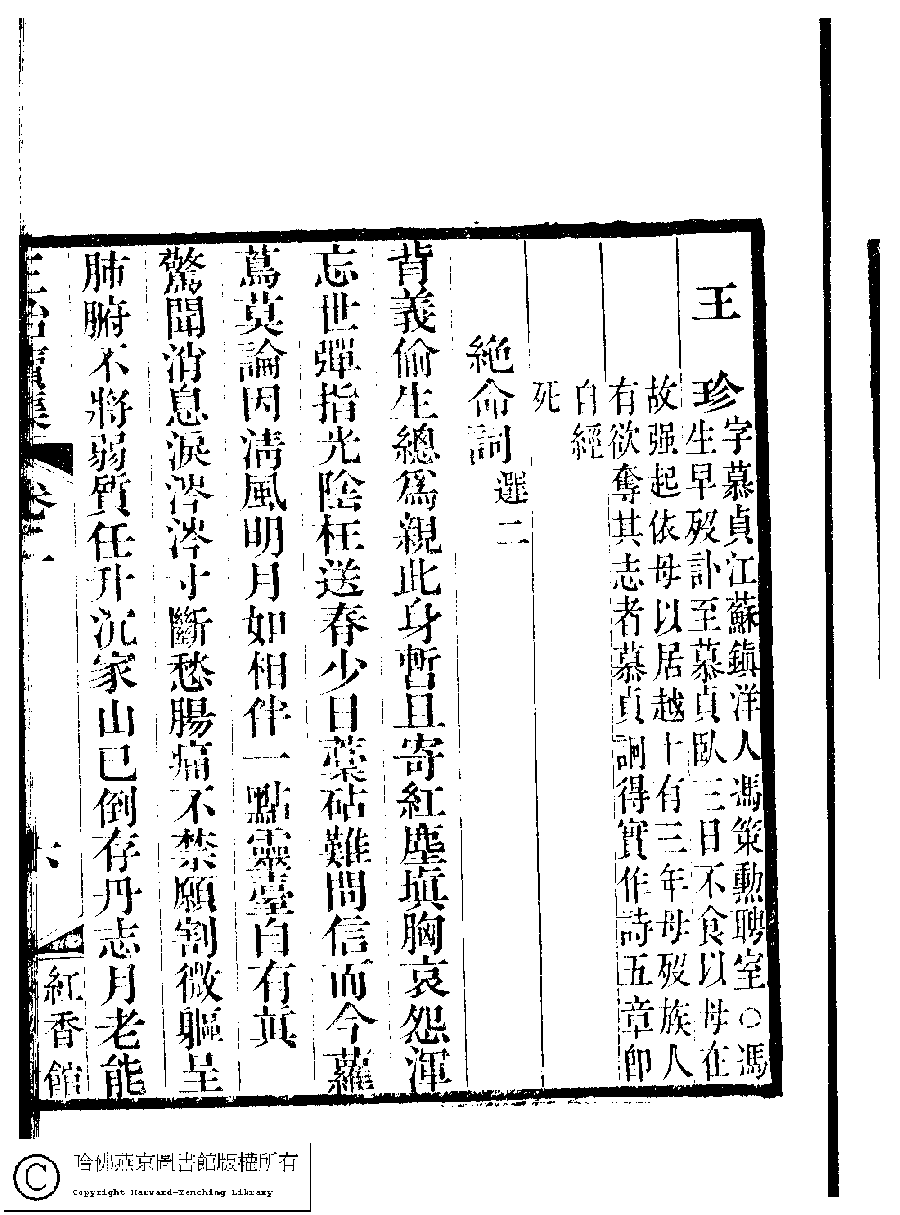 Poem [Wang Zhen [lüe zhuan]]