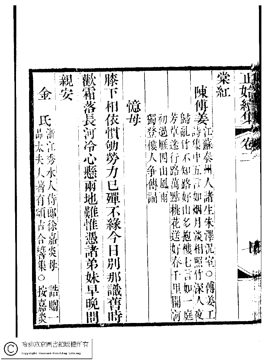 | (PRINT FRIENDLY VERSION) 國朝閨秀正始續集﹕十卷﹐附錄﹕一卷﹐補遺﹕一卷﹐輓詞﹕一卷(清惲珠輯)。清道光十六年(1836)紅香館刻本。 ![]() Page : 2.7b | click for larger image | Back |