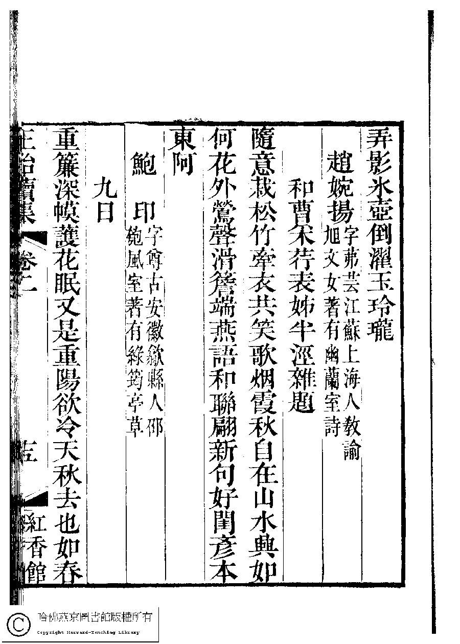 | (PRINT FRIENDLY VERSION) 國朝閨秀正始續集﹕十卷﹐附錄﹕一卷﹐補遺﹕一卷﹐輓詞﹕一卷(清惲珠輯)。清道光十六年(1836)紅香館刻本。 ![]() Page : 2.15a | click for larger image | Back |