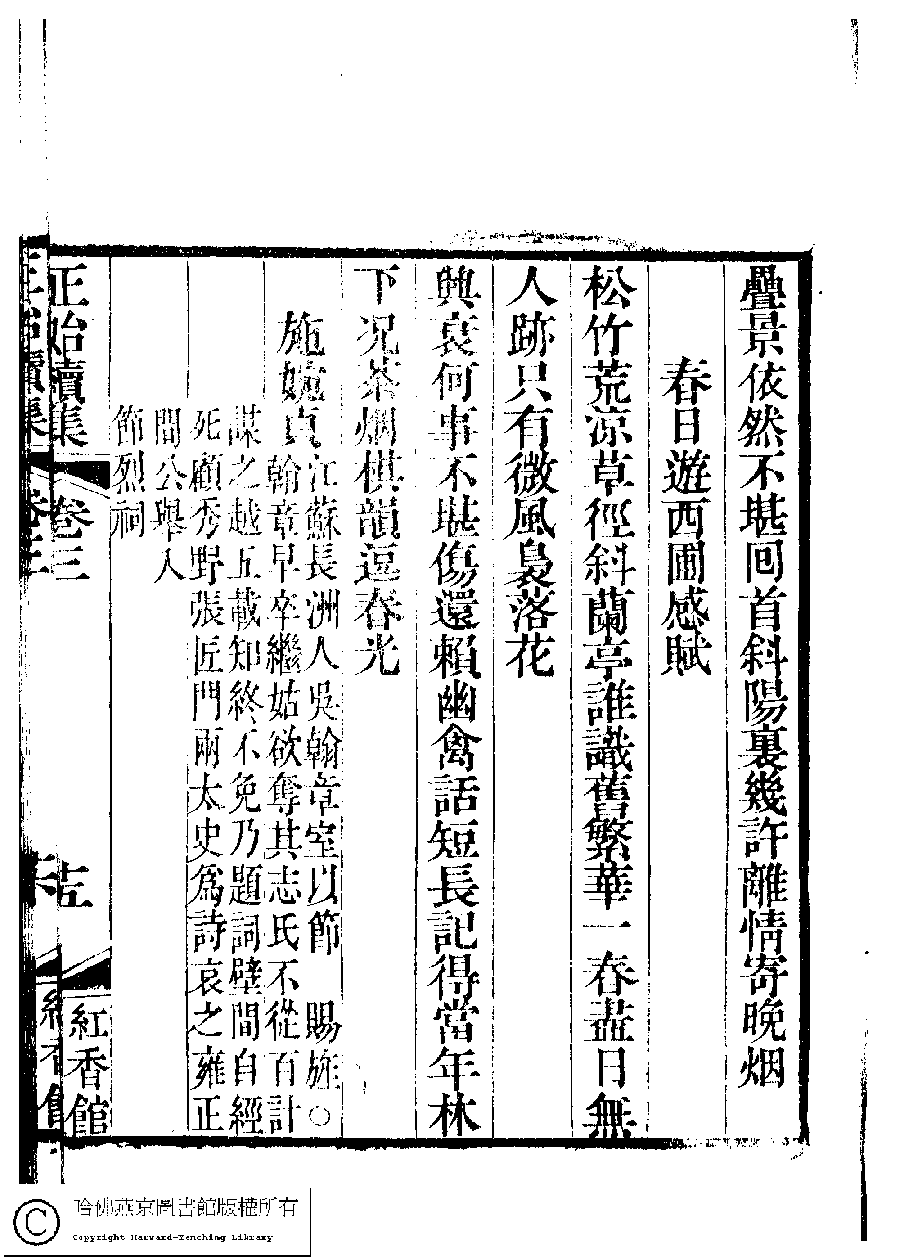 | (PRINT FRIENDLY VERSION) 國朝閨秀正始續集﹕十卷﹐附錄﹕一卷﹐補遺﹕一卷﹐輓詞﹕一卷(清惲珠輯)。清道光十六年(1836)紅香館刻本。 ![]() Page : 3.15a | click for larger image | Back |