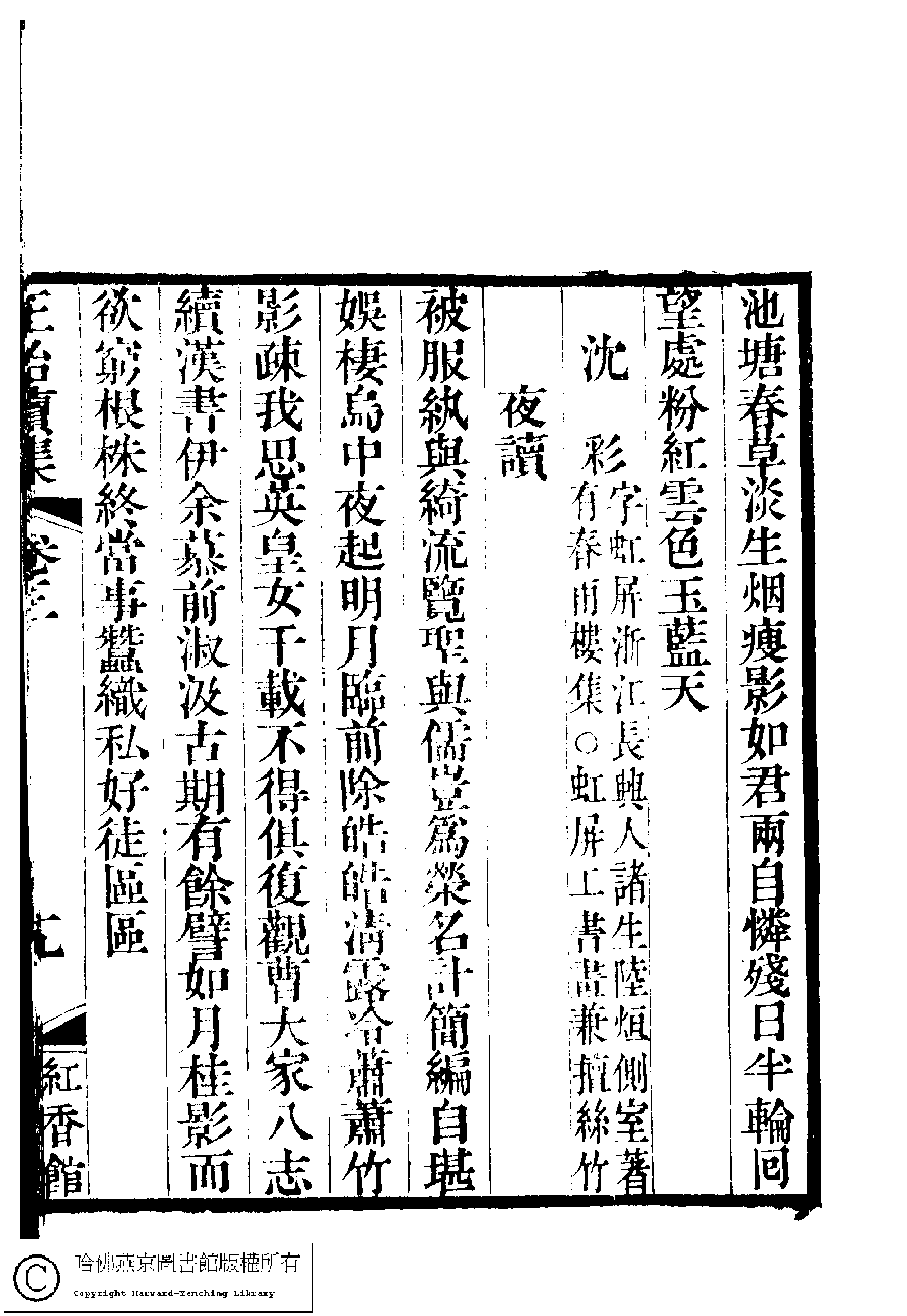 | (PRINT FRIENDLY VERSION) 國朝閨秀正始續集﹕十卷﹐附錄﹕一卷﹐補遺﹕一卷﹐輓詞﹕一卷(清惲珠輯)。清道光十六年(1836)紅香館刻本。 ![]() Page : 3.19a | click for larger image | Back |
