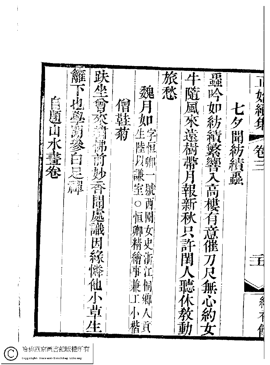 | (PRINT FRIENDLY VERSION) 國朝閨秀正始續集﹕十卷﹐附錄﹕一卷﹐補遺﹕一卷﹐輓詞﹕一卷(清惲珠輯)。清道光十六年(1836)紅香館刻本。 ![]() Page : 3.21b | click for larger image | Back |