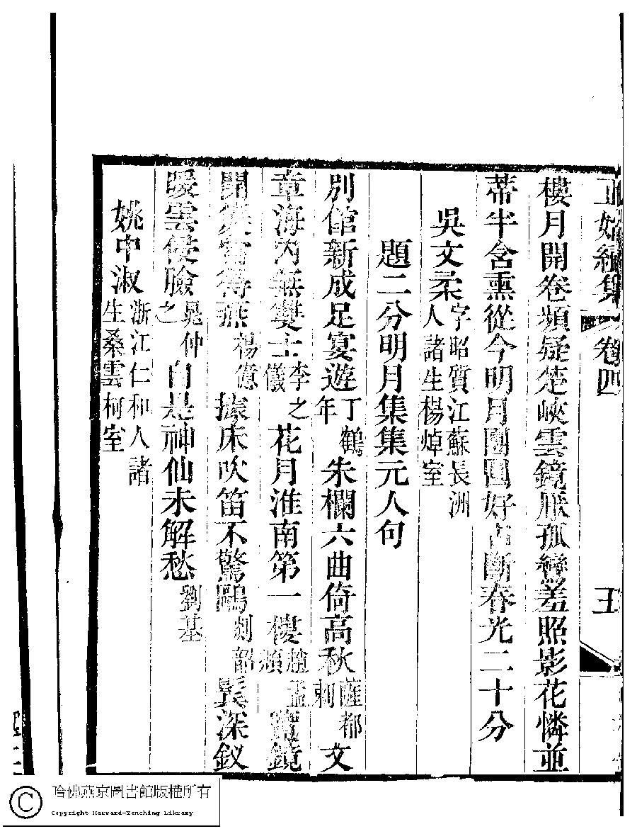 | (PRINT FRIENDLY VERSION) 國朝閨秀正始續集﹕十卷﹐附錄﹕一卷﹐補遺﹕一卷﹐輓詞﹕一卷(清惲珠輯)。清道光十六年(1836)紅香館刻本。 ![]() Page : 4.5b | click for larger image | Back |