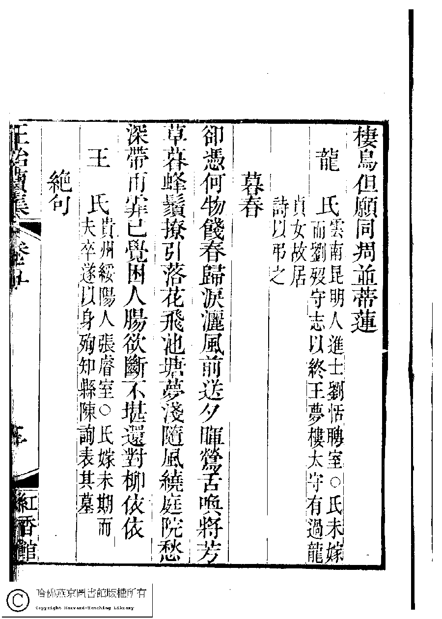 | (PRINT FRIENDLY VERSION) 國朝閨秀正始續集﹕十卷﹐附錄﹕一卷﹐補遺﹕一卷﹐輓詞﹕一卷(清惲珠輯)。清道光十六年(1836)紅香館刻本。 ![]() Page : 5.2a | click for larger image | Back |