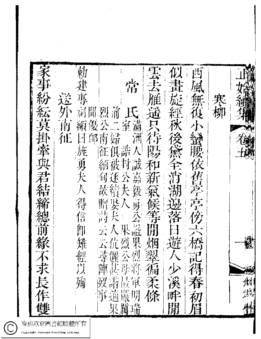 | (PRINT FRIENDLY VERSION) 國朝閨秀正始續集﹕十卷﹐附錄﹕一卷﹐補遺﹕一卷﹐輓詞﹕一卷(清惲珠輯)。清道光十六年(1836)紅香館刻本。 ![]() Page : 5.1b | click for larger image | Back |