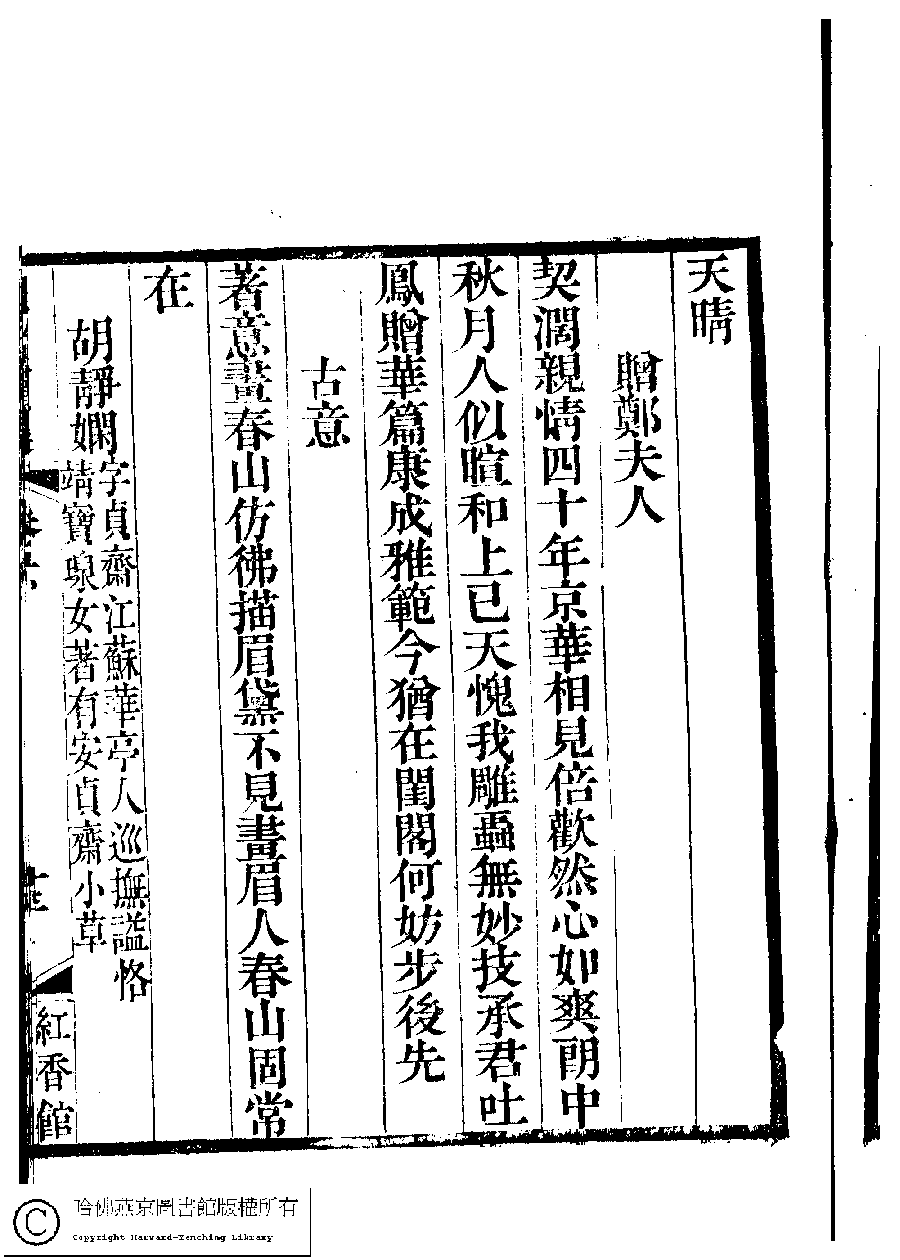 | (PRINT FRIENDLY VERSION) 國朝閨秀正始續集﹕十卷﹐附錄﹕一卷﹐補遺﹕一卷﹐輓詞﹕一卷(清惲珠輯)。清道光十六年(1836)紅香館刻本。 ![]() Page : 6.13a | click for larger image | Back |
