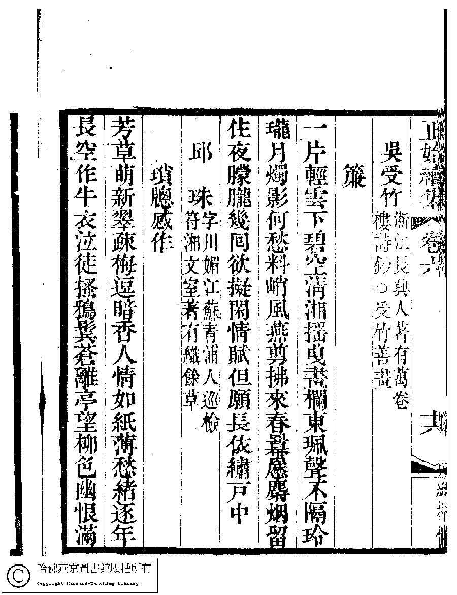 | (PRINT FRIENDLY VERSION) 國朝閨秀正始續集﹕十卷﹐附錄﹕一卷﹐補遺﹕一卷﹐輓詞﹕一卷(清惲珠輯)。清道光十六年(1836)紅香館刻本。 ![]() Page : 6.16b | click for larger image | Back |