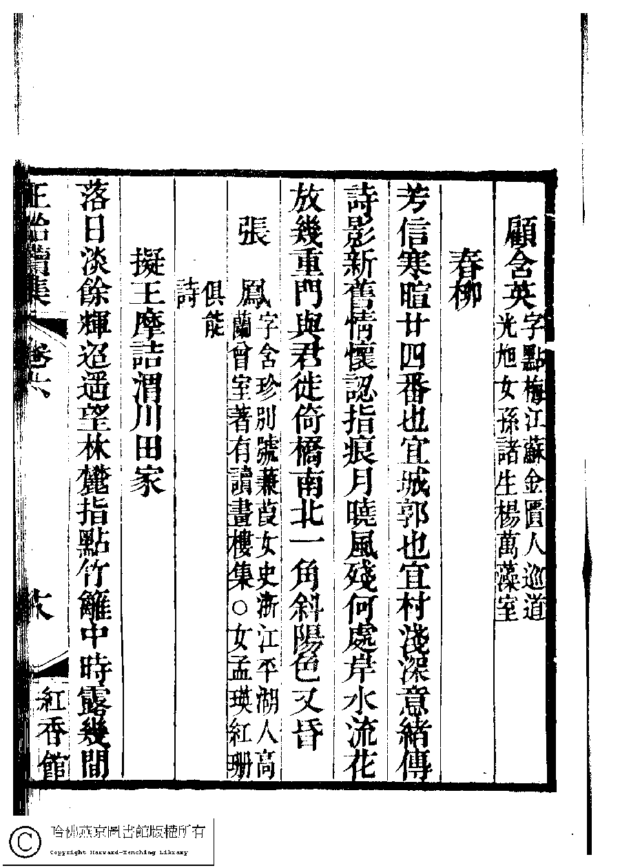 | (PRINT FRIENDLY VERSION) 國朝閨秀正始續集﹕十卷﹐附錄﹕一卷﹐補遺﹕一卷﹐輓詞﹕一卷(清惲珠輯)。清道光十六年(1836)紅香館刻本。 ![]() Page : 6.18a | click for larger image | Back |