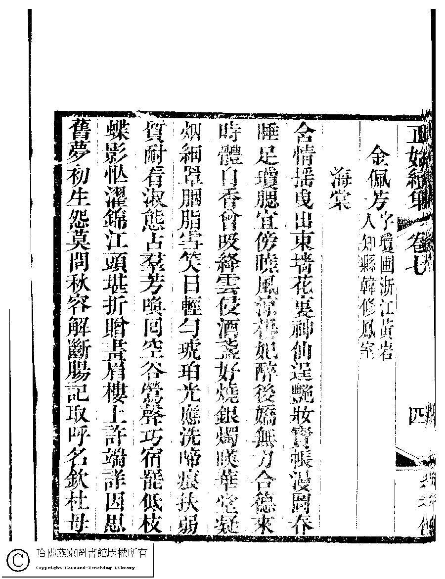 | (PRINT FRIENDLY VERSION) 國朝閨秀正始續集﹕十卷﹐附錄﹕一卷﹐補遺﹕一卷﹐輓詞﹕一卷(清惲珠輯)。清道光十六年(1836)紅香館刻本。 ![]() Page : 7.4b | click for larger image | Back |