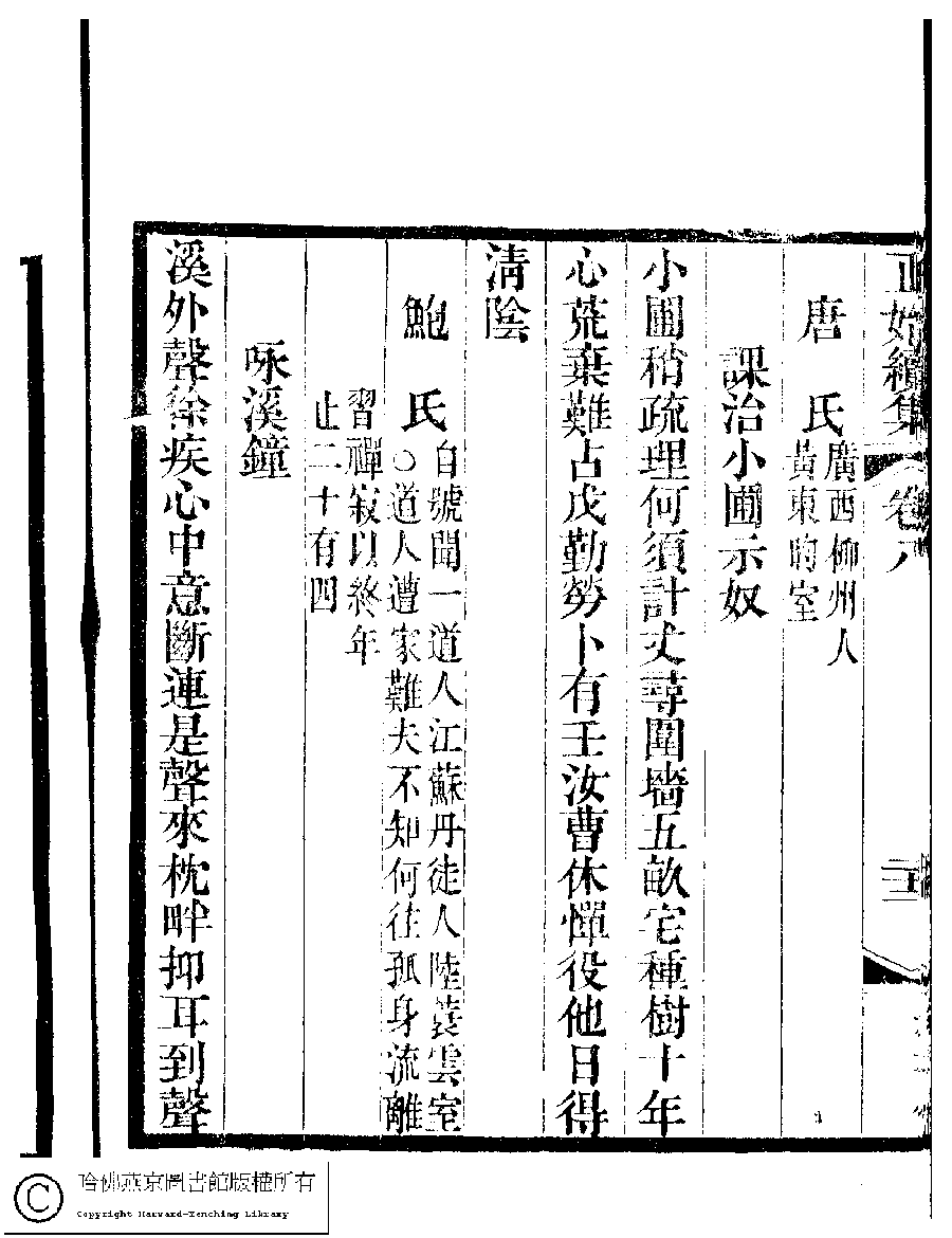 | (PRINT FRIENDLY VERSION) 國朝閨秀正始續集﹕十卷﹐附錄﹕一卷﹐補遺﹕一卷﹐輓詞﹕一卷(清惲珠輯)。清道光十六年(1836)紅香館刻本。 ![]() Page : 8.22b | click for larger image | Back |