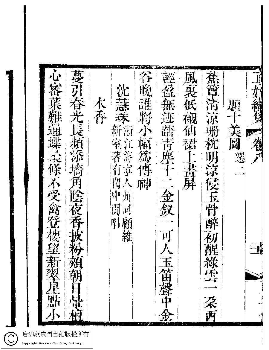 | (PRINT FRIENDLY VERSION) 國朝閨秀正始續集﹕十卷﹐附錄﹕一卷﹐補遺﹕一卷﹐輓詞﹕一卷(清惲珠輯)。清道光十六年(1836)紅香館刻本。 ![]() Page : 8.21b | click for larger image | Back |
