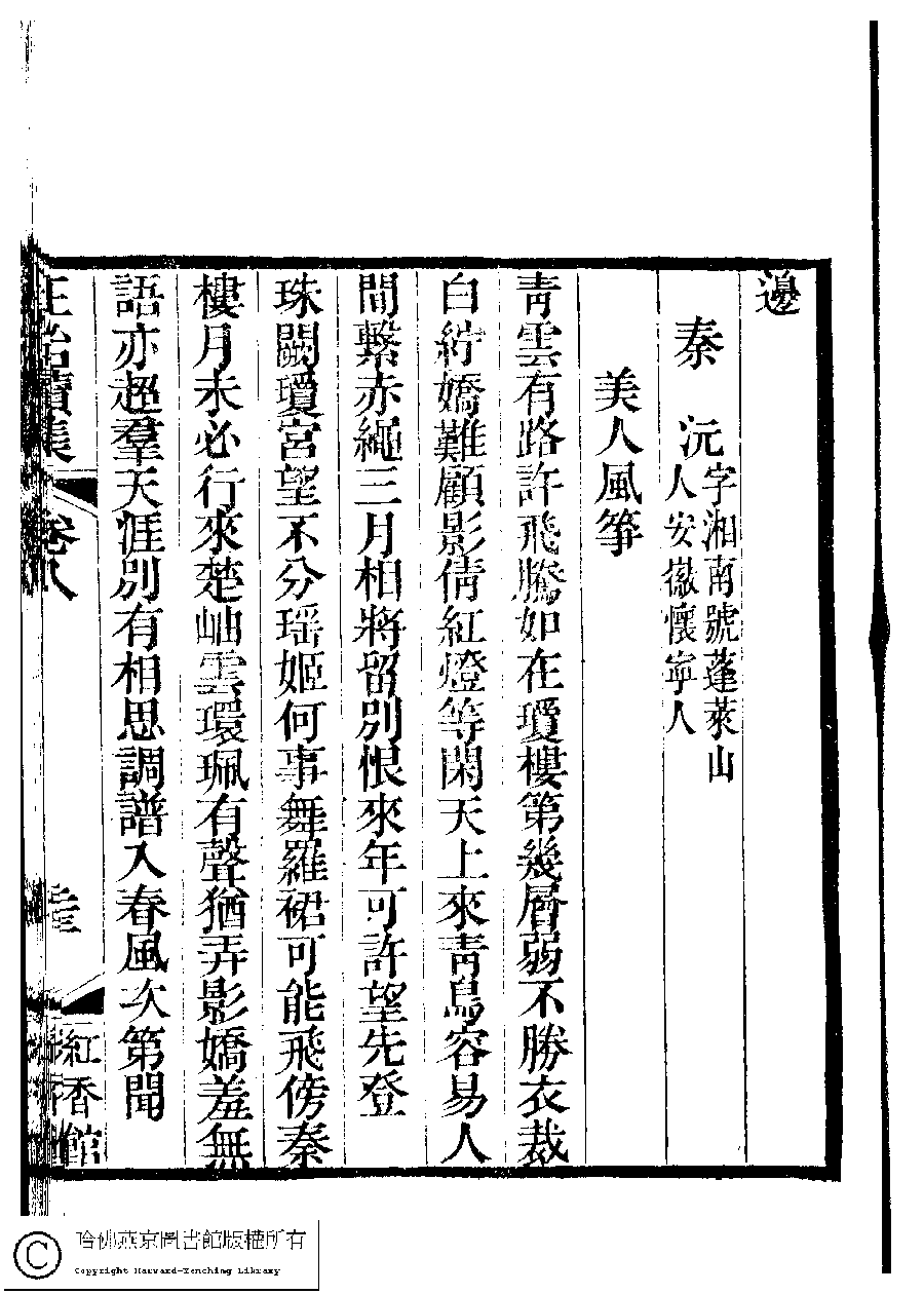 | (PRINT FRIENDLY VERSION) 國朝閨秀正始續集﹕十卷﹐附錄﹕一卷﹐補遺﹕一卷﹐輓詞﹕一卷(清惲珠輯)。清道光十六年(1836)紅香館刻本。 ![]() Page : 8.23a | click for larger image | Back |