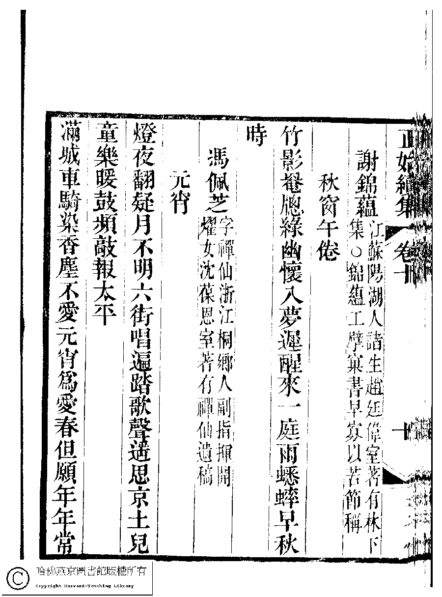 | (PRINT FRIENDLY VERSION) 國朝閨秀正始續集﹕十卷﹐附錄﹕一卷﹐補遺﹕一卷﹐輓詞﹕一卷(清惲珠輯)。清道光十六年(1836)紅香館刻本。 ![]() Page : 10.10b | click for larger image | Back |