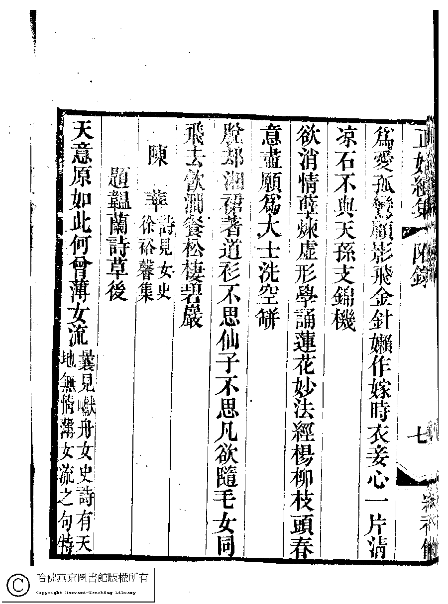 | (PRINT FRIENDLY VERSION) 國朝閨秀正始續集﹕十卷﹐附錄﹕一卷﹐補遺﹕一卷﹐輓詞﹕一卷(清惲珠輯)。清道光十六年(1836)紅香館刻本。 ![]() Page : 附錄.7b | click for larger image | Back |