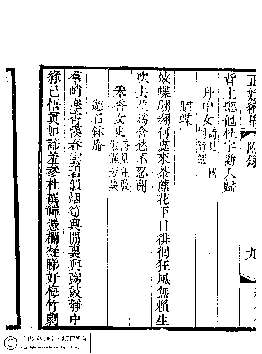 | (PRINT FRIENDLY VERSION) 國朝閨秀正始續集﹕十卷﹐附錄﹕一卷﹐補遺﹕一卷﹐輓詞﹕一卷(清惲珠輯)。清道光十六年(1836)紅香館刻本。 ![]() Page : 附錄.9b | click for larger image | Back |