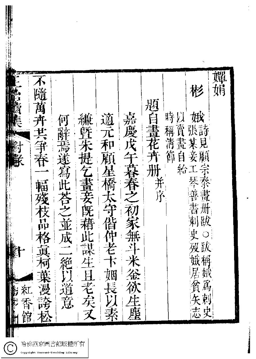 | (PRINT FRIENDLY VERSION) 國朝閨秀正始續集﹕十卷﹐附錄﹕一卷﹐補遺﹕一卷﹐輓詞﹕一卷(清惲珠輯)。清道光十六年(1836)紅香館刻本。 ![]() Page : 附錄.10a | click for larger image | Back |