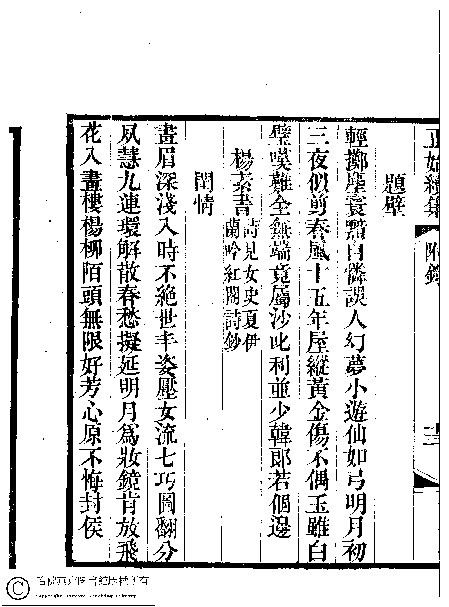 | (PRINT FRIENDLY VERSION) 國朝閨秀正始續集﹕十卷﹐附錄﹕一卷﹐補遺﹕一卷﹐輓詞﹕一卷(清惲珠輯)。清道光十六年(1836)紅香館刻本。 ![]() Page : 附錄.13b | click for larger image | Back |