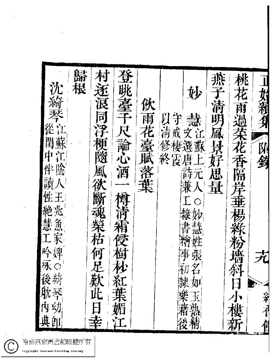 | (PRINT FRIENDLY VERSION) 國朝閨秀正始續集﹕十卷﹐附錄﹕一卷﹐補遺﹕一卷﹐輓詞﹕一卷(清惲珠輯)。清道光十六年(1836)紅香館刻本。 ![]() Page : 附錄.20a | click for larger image | 國朝閨秀正始續集﹕十卷﹐附錄﹕一卷﹐補遺﹕一卷﹐輓詞﹕一卷(清惲珠輯)。清道光十六年(1836)紅香館刻本。![]() Page : 附錄.19b | click for larger image | Back |