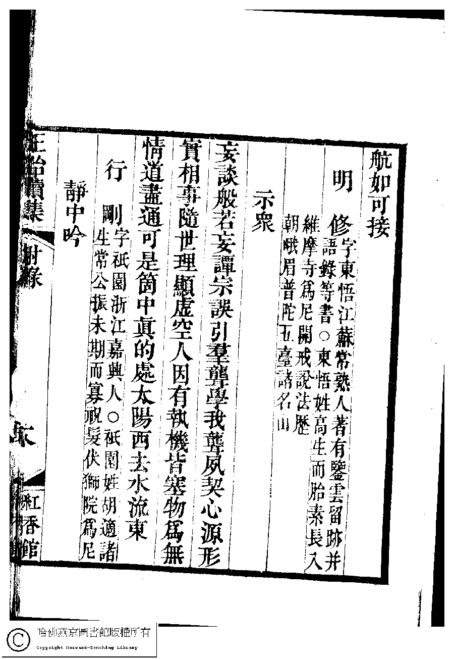 | (PRINT FRIENDLY VERSION) 國朝閨秀正始續集﹕十卷﹐附錄﹕一卷﹐補遺﹕一卷﹐輓詞﹕一卷(清惲珠輯)。清道光十六年(1836)紅香館刻本。 ![]() Page : 附錄.18a | click for larger image | Back |