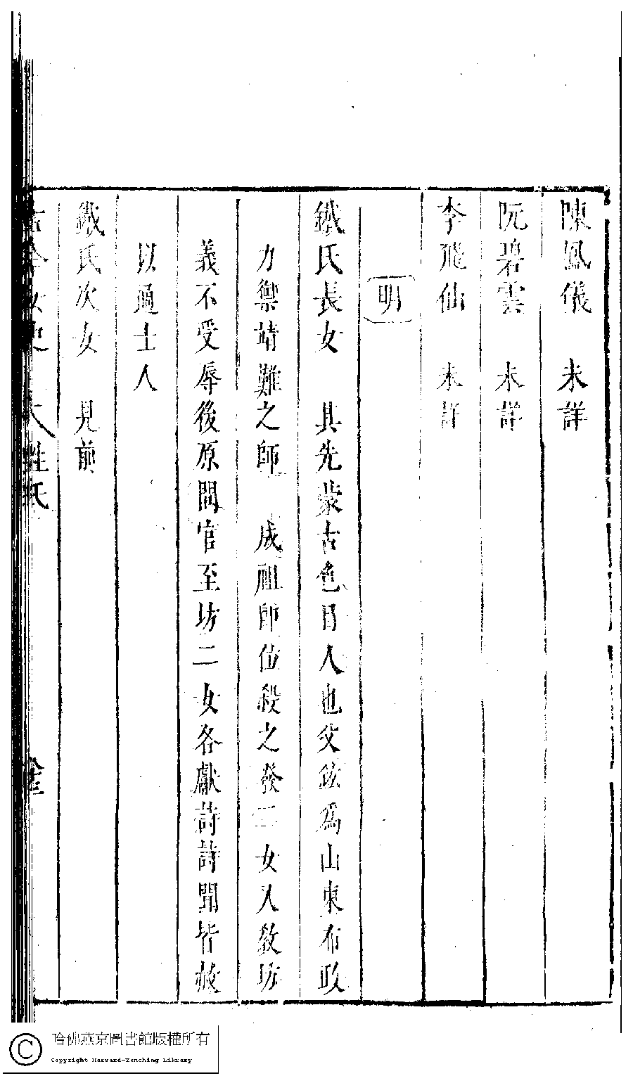 | (PRINT FRIENDLY VERSION) 古今女史﹕十二卷﹐詩集﹕八卷﹐附姓氏字里詳節﹕一卷(明趙世杰輯)。明崇禎(1628-1644)問奇閣刻本 ![]() Page : 姓氏.83a | click for larger image | Back |