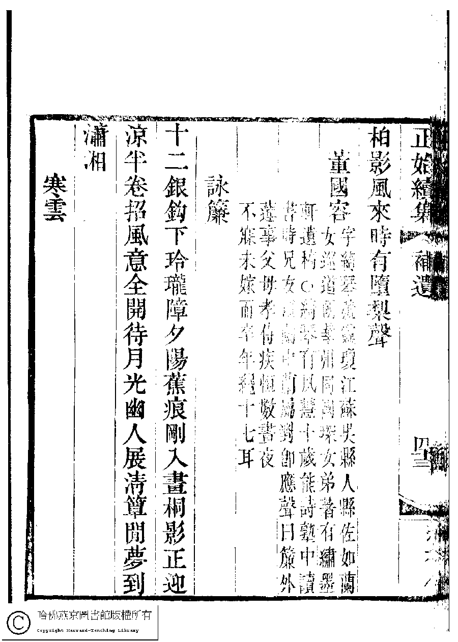 | (PRINT FRIENDLY VERSION) 國朝閨秀正始續集﹕十卷﹐附錄﹕一卷﹐補遺﹕一卷﹐輓詞﹕一卷(清惲珠輯)。清道光十六年(1836)紅香館刻本。 ![]() Page : 補遺.43b | click for larger image | Back |