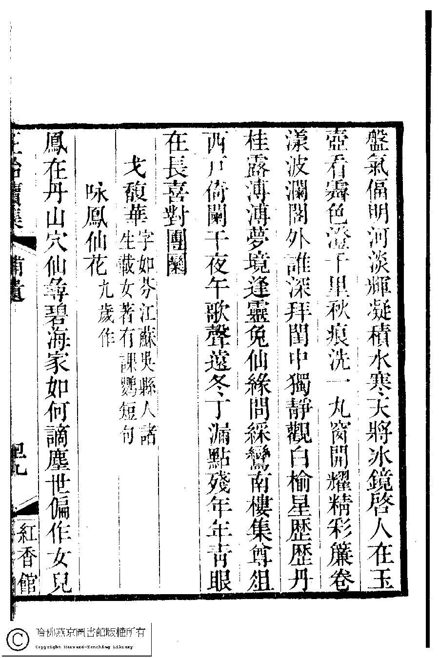 | (PRINT FRIENDLY VERSION) 國朝閨秀正始續集﹕十卷﹐附錄﹕一卷﹐補遺﹕一卷﹐輓詞﹕一卷(清惲珠輯)。清道光十六年(1836)紅香館刻本。 ![]() Page : 補遺.49a | click for larger image | Back |