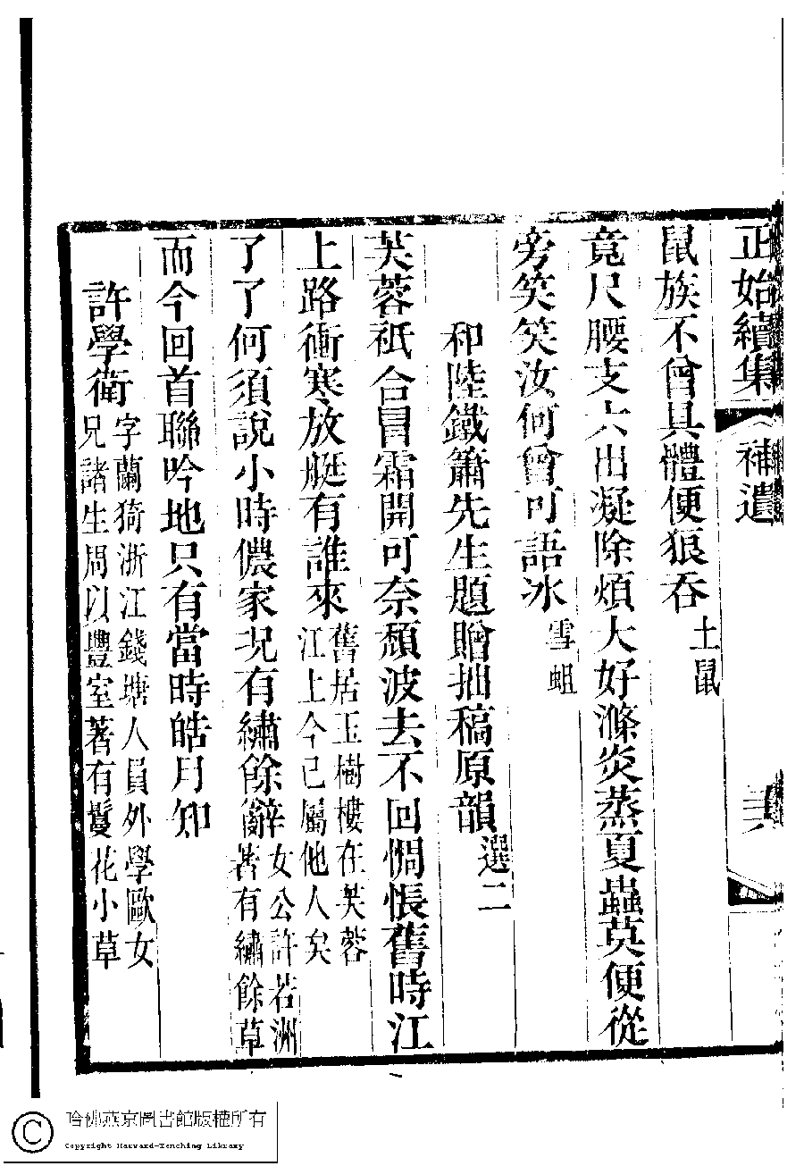 | (PRINT FRIENDLY VERSION) 國朝閨秀正始續集﹕十卷﹐附錄﹕一卷﹐補遺﹕一卷﹐輓詞﹕一卷(清惲珠輯)。清道光十六年(1836)紅香館刻本。 ![]() Page : 補遺.56b | click for larger image | Back |