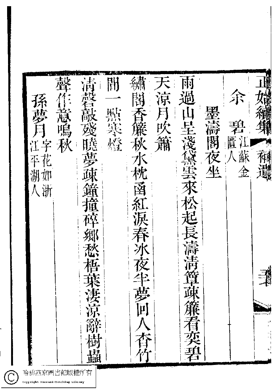 | (PRINT FRIENDLY VERSION) 國朝閨秀正始續集﹕十卷﹐附錄﹕一卷﹐補遺﹕一卷﹐輓詞﹕一卷(清惲珠輯)。清道光十六年(1836)紅香館刻本。 ![]() Page : 補遺.57b | click for larger image | Back |