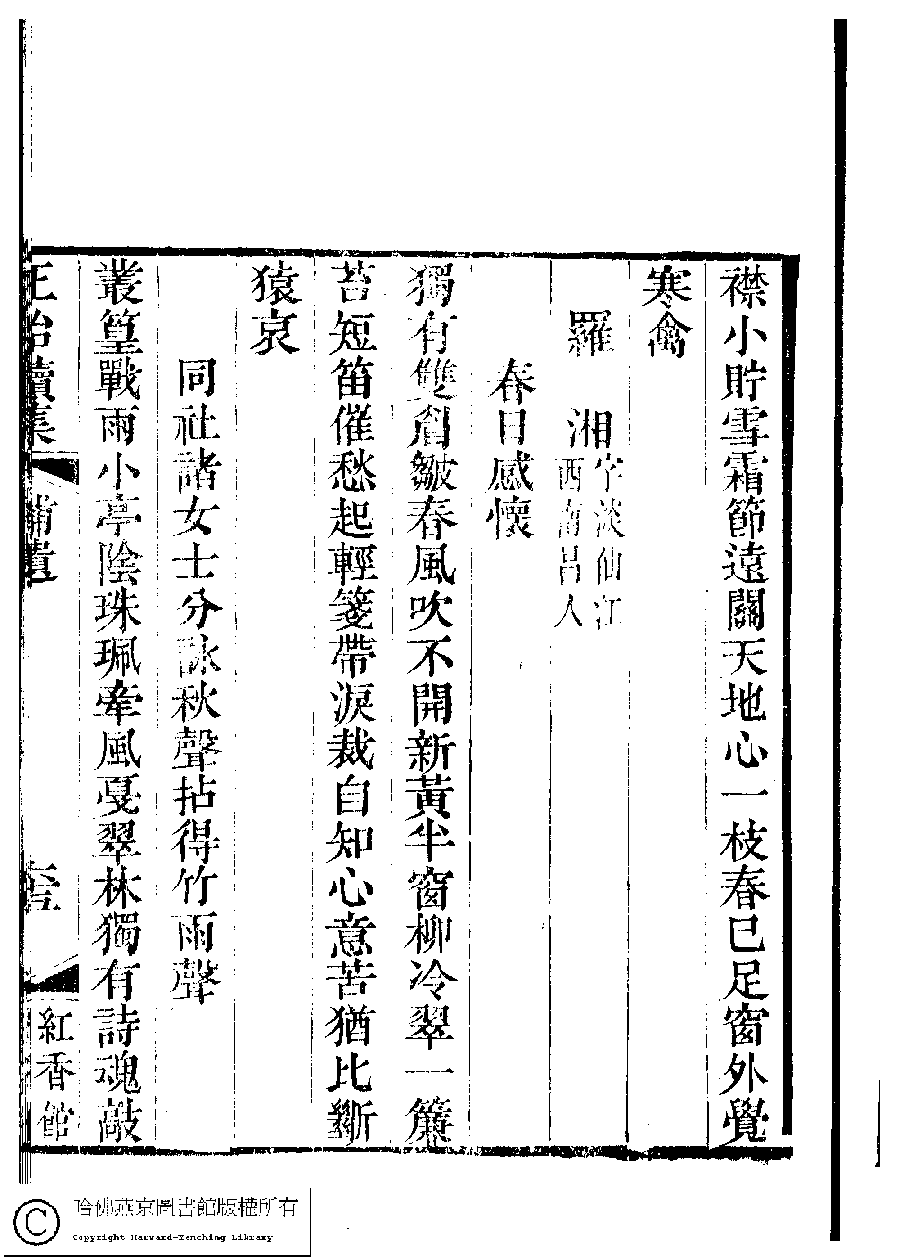 | (PRINT FRIENDLY VERSION) 國朝閨秀正始續集﹕十卷﹐附錄﹕一卷﹐補遺﹕一卷﹐輓詞﹕一卷(清惲珠輯)。清道光十六年(1836)紅香館刻本。 ![]() Page : 補遺.65a | click for larger image | Back |