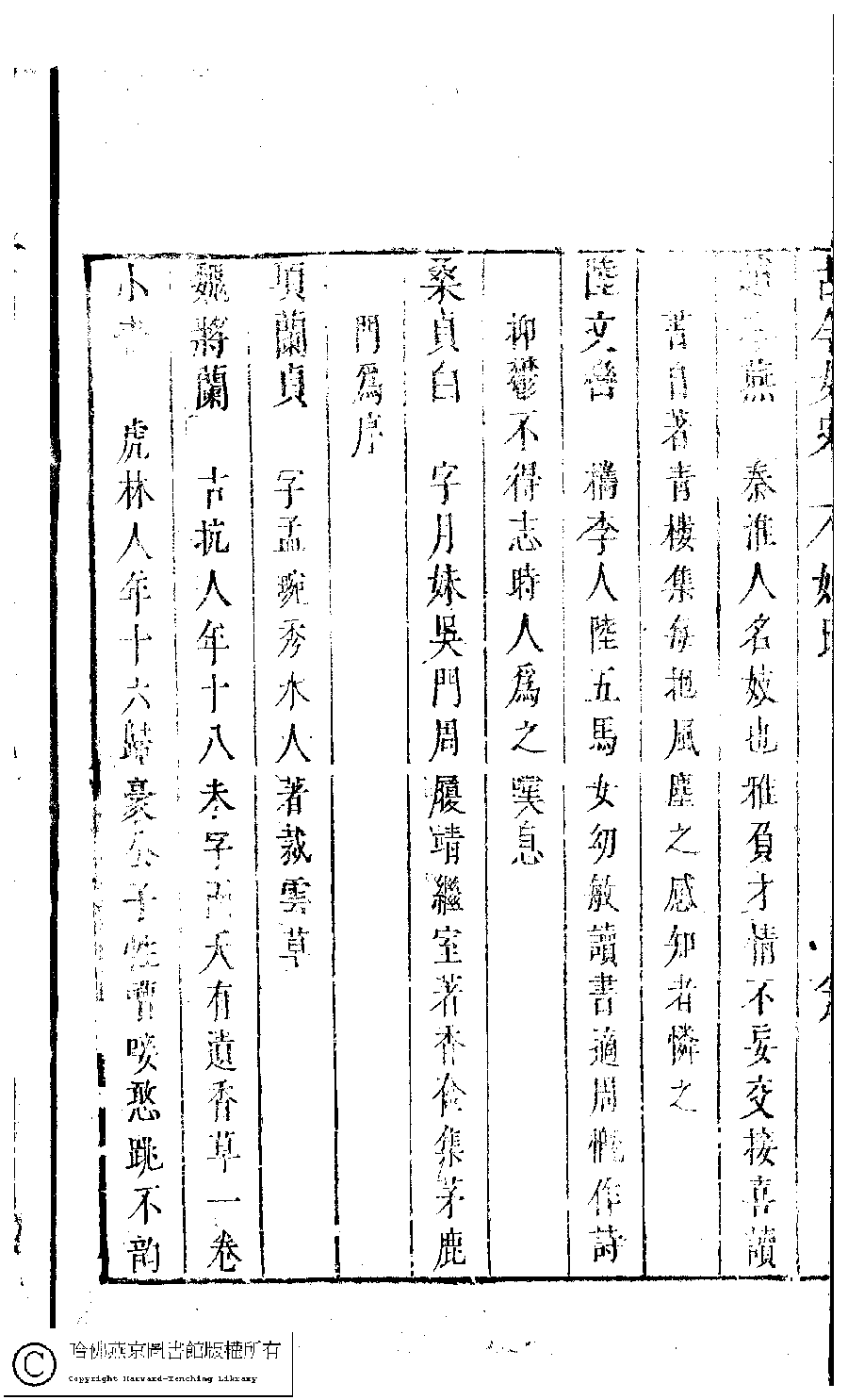 | (PRINT FRIENDLY VERSION) 古今女史﹕十二卷﹐詩集﹕八卷﹐附姓氏字里詳節﹕一卷(明趙世杰輯)。明崇禎(1628-1644)問奇閣刻本 ![]() Page : 姓氏.89b | click for larger image | Back |