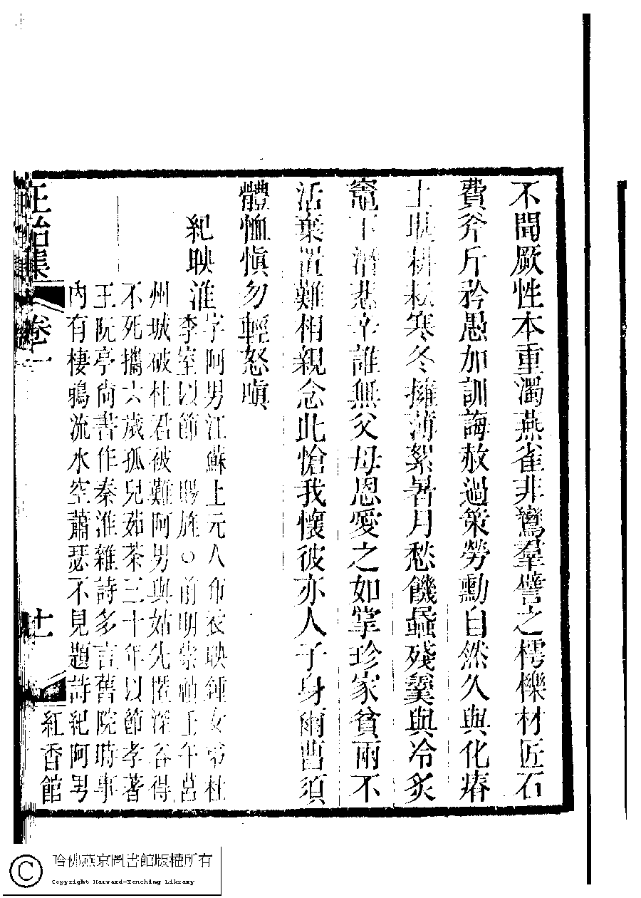 | (PRINT FRIENDLY VERSION) 國朝閨秀正始集﹕二十卷﹐附錄﹕一卷﹐補遺﹕一卷﹐又附題詞﹕一卷(清惲珠輯)。清道光十一年(1831)紅香館刻本。 ![]() Page : 1.11a | click for larger image | 國朝閨秀正始集﹕二十卷﹐附錄﹕一卷﹐補遺﹕一卷﹐又附題詞﹕一卷(清惲珠輯)。清道光十一年(1831)紅香館刻本。![]() Page : 1.10b | click for larger image | Back |