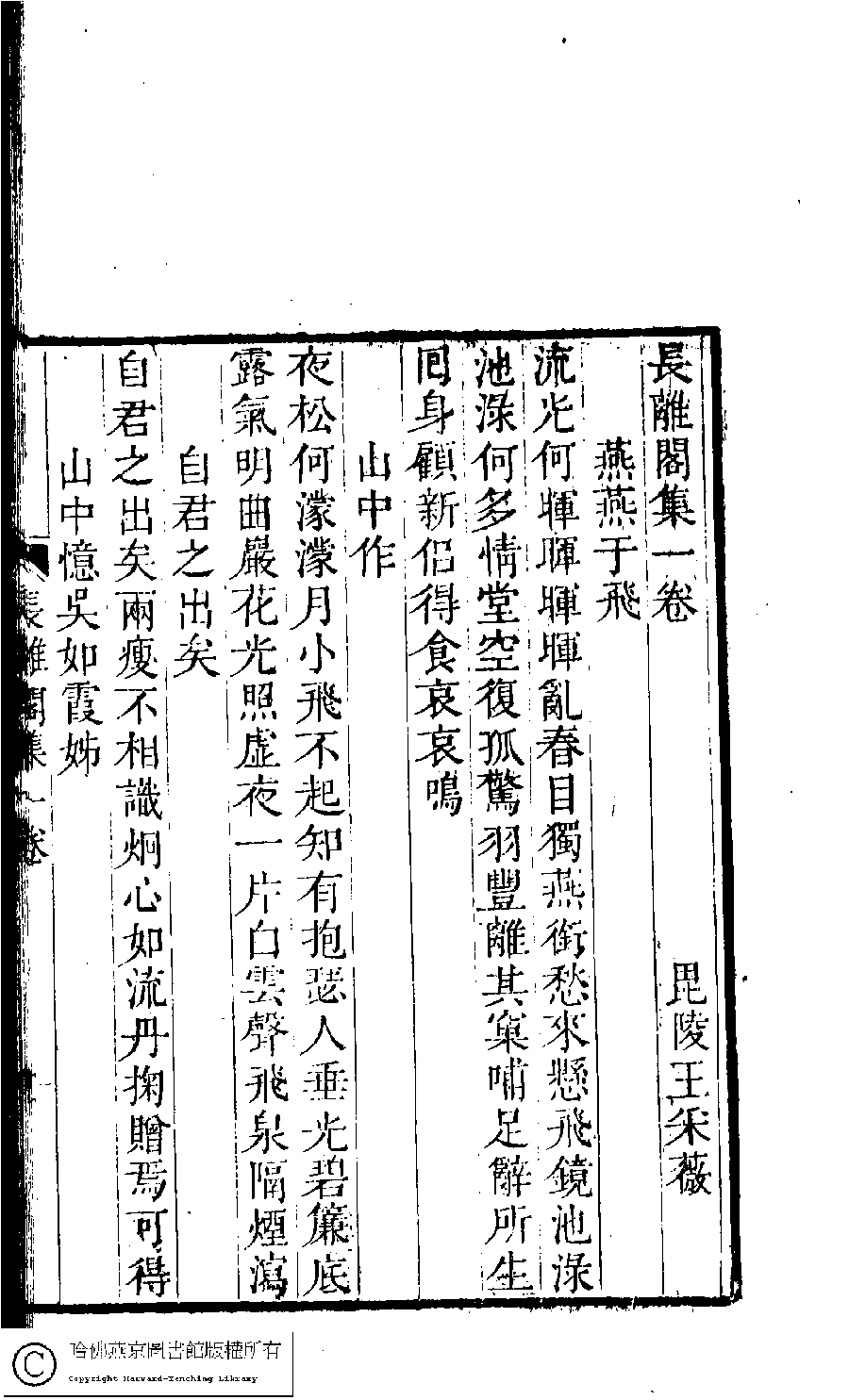 | (PRINT FRIENDLY VERSION) 長離閣集﹕一卷(清王釆薇撰)。清嘉慶二十三年(1818)刻本。 ![]() Page : 1b | click for larger image | 長離閣集﹕一卷(清王釆薇撰)。清嘉慶二十三年(1818)刻本。![]() Page : 1a | click for larger image | Back |