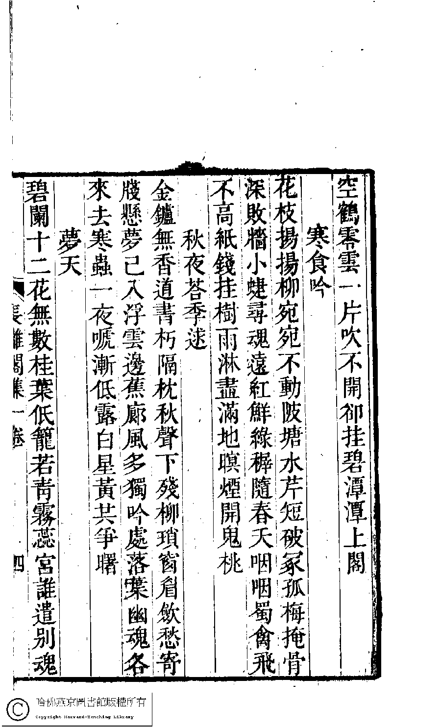| (PRINT FRIENDLY VERSION) 長離閣集﹕一卷(清王釆薇撰)。清嘉慶二十三年(1818)刻本。 ![]() Page : 4a | click for larger image | Back |