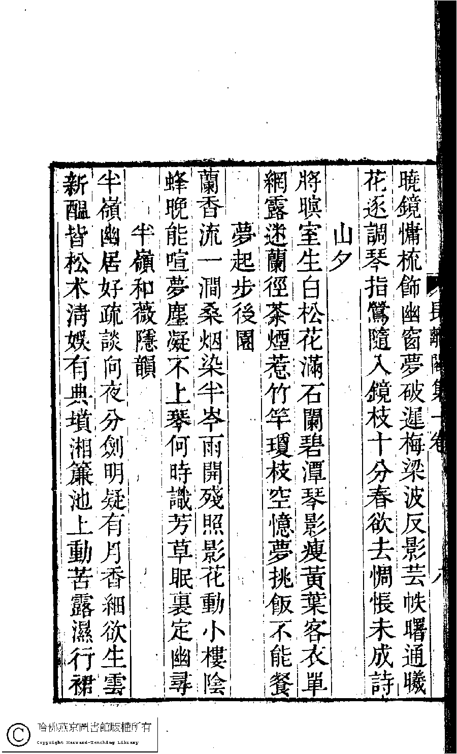 | (PRINT FRIENDLY VERSION) 長離閣集﹕一卷(清王釆薇撰)。清嘉慶二十三年(1818)刻本。 ![]() Page : 8b | click for larger image | Back |