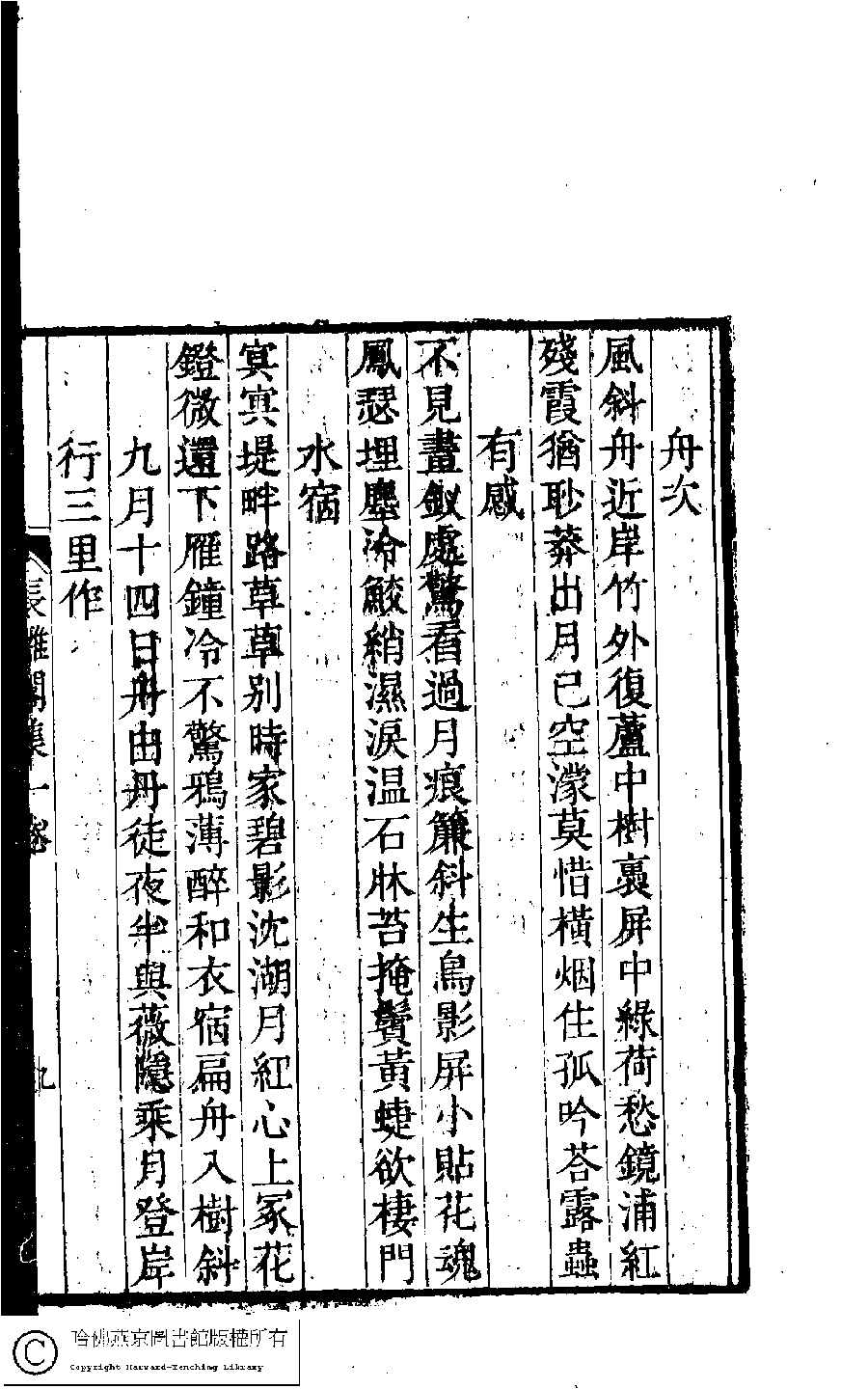 Poem [Jiu yue shi si ri zhou you Dantu ye ban yu Weiyin cheng yue deng an xing san li zuo]