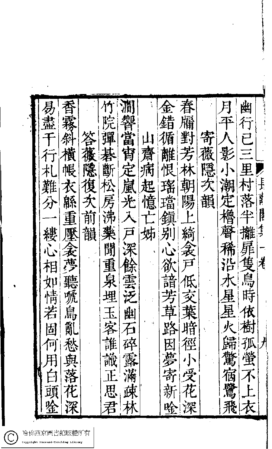 | (PRINT FRIENDLY VERSION) 長離閣集﹕一卷(清王釆薇撰)。清嘉慶二十三年(1818)刻本。 ![]() Page : 9b | click for larger image | 長離閣集﹕一卷(清王釆薇撰)。清嘉慶二十三年(1818)刻本。![]() Page : 9a | click for larger image | Back |