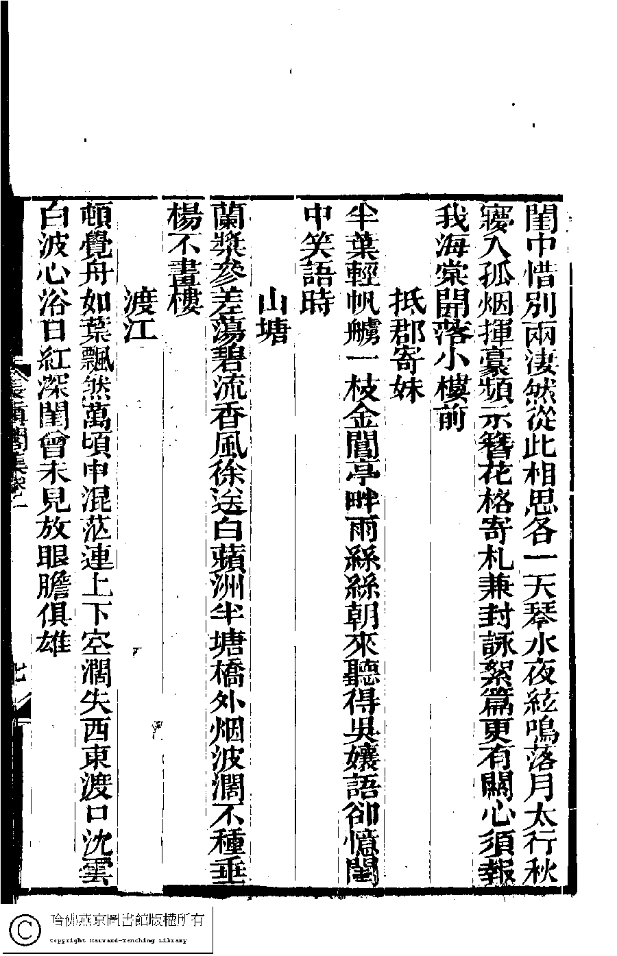 | (PRINT FRIENDLY VERSION) 長真閣集﹕七卷(清席佩蘭撰)。光緖十七年(1891)强氏南皋草廬刻本。 ![]() Page : 1.7a | click for larger image | 長真閣集﹕七卷(清席佩蘭撰)。光緖十七年(1891)强氏南皋草廬刻本。![]() Page : 1.6b | click for larger image | Back |