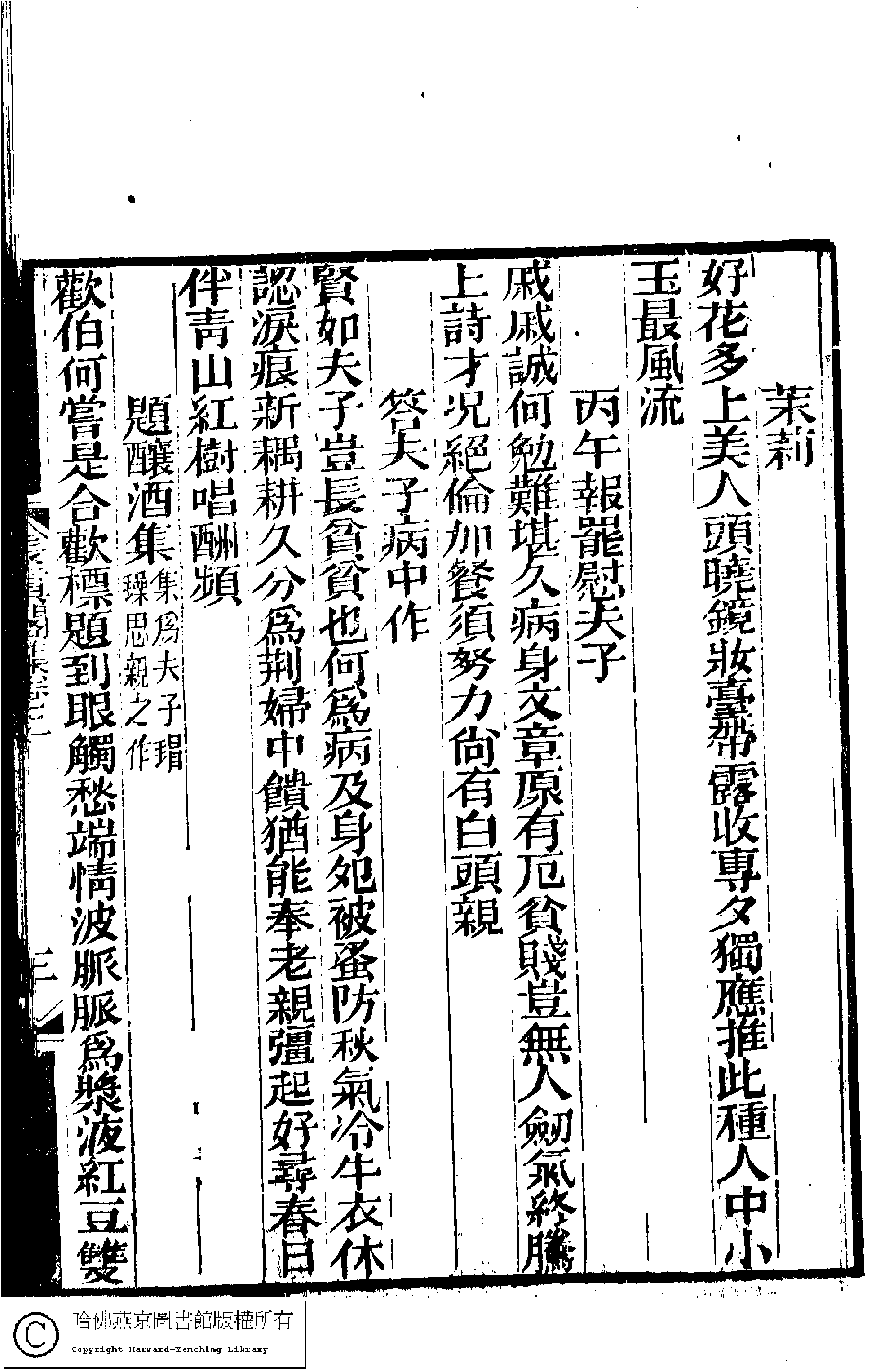 | (PRINT FRIENDLY VERSION) 長真閣集﹕七卷(清席佩蘭撰)。光緖十七年(1891)强氏南皋草廬刻本。 ![]() Page : 2.3a | click for larger image | Back |